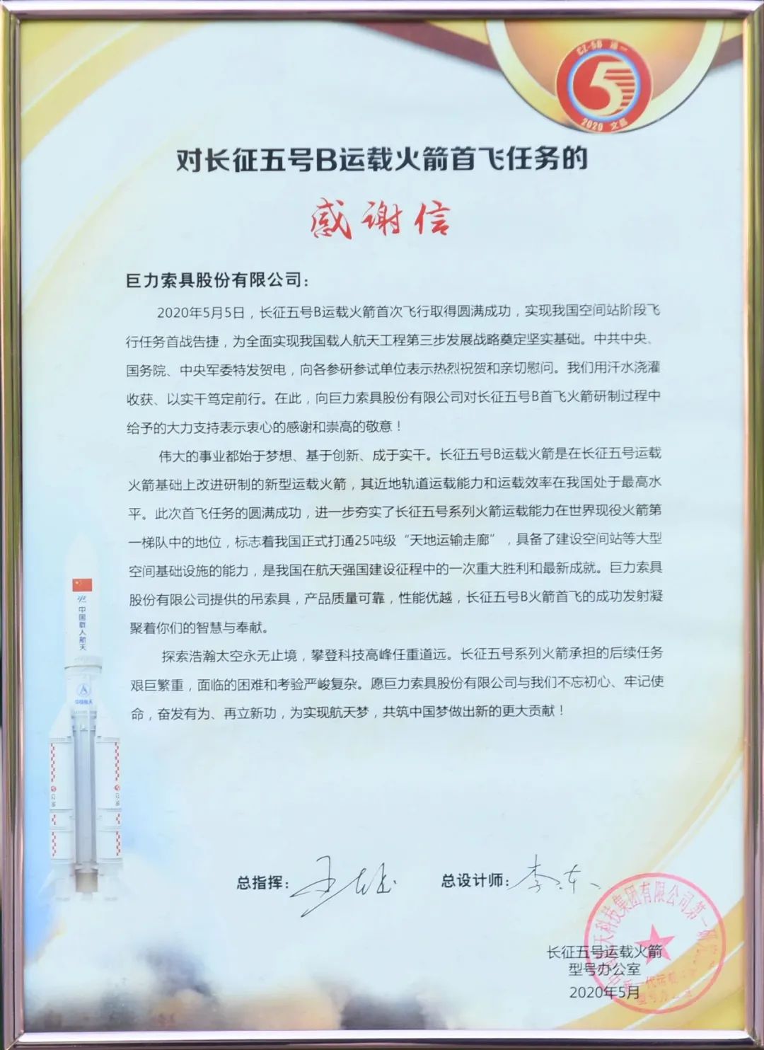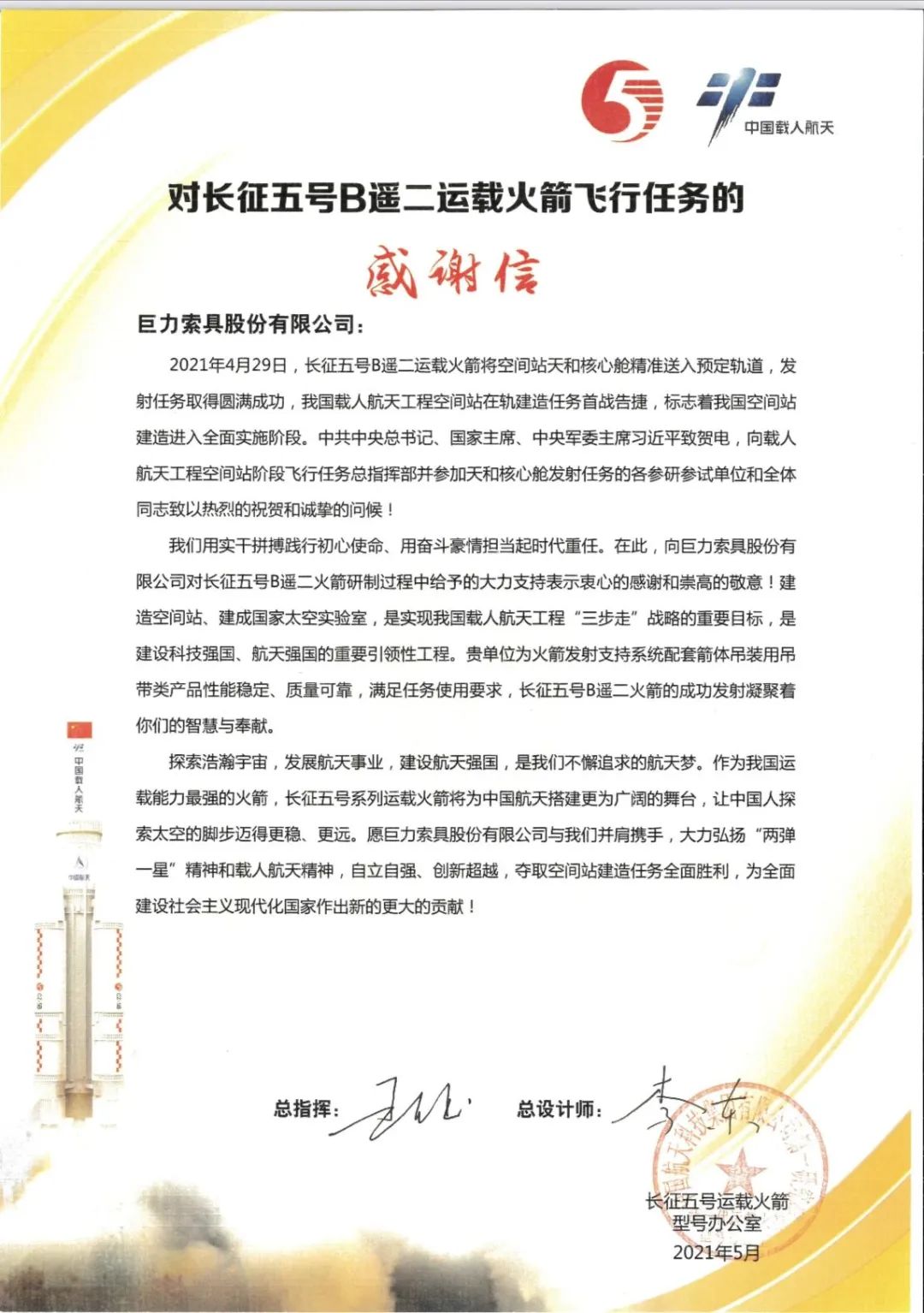 获胜!巨力索具推动“梦天”新新篇章