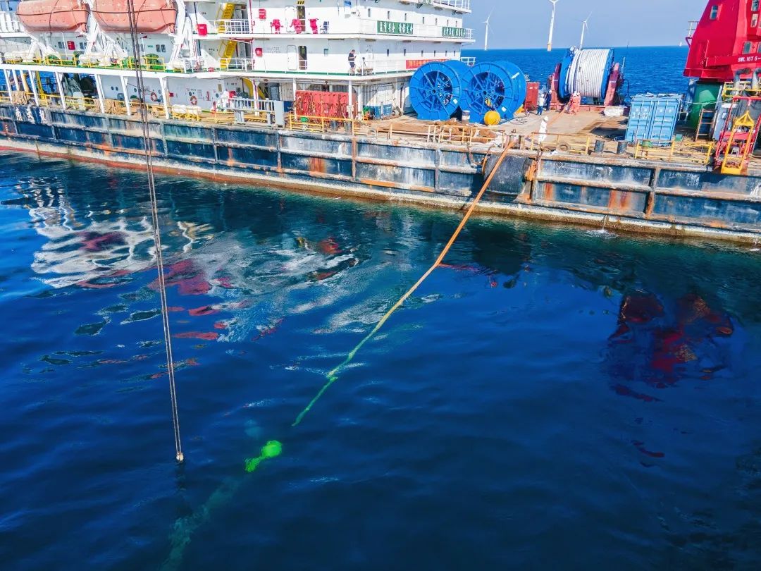 6月7日,海上漂泊式风机永远系泊索在广东阳江名目场完成水下铺设,为后续海上风机浮式根本平台达到装配打下坚固根本。