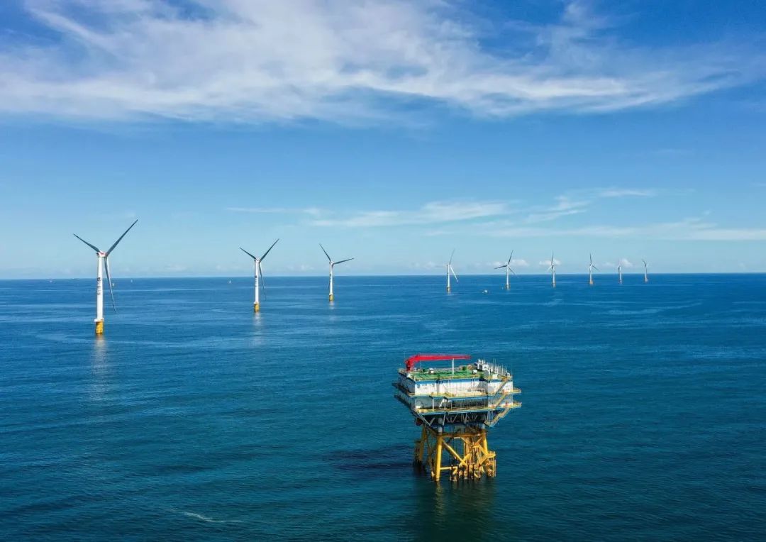 12月7日13时37分,环球首台抗台风型漂泊式海上风电机组,在广东阳江海上风电场胜利并网发电。