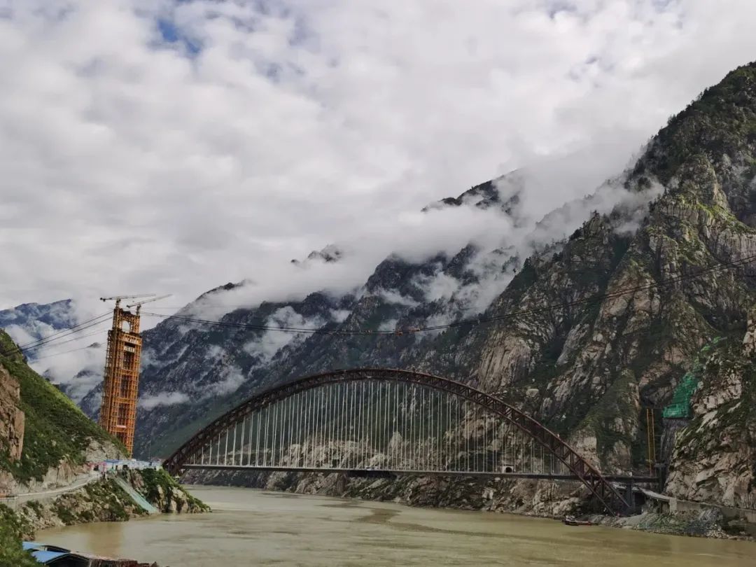 拉林铁路正线全长435.48千米,设想时速160千米,是西藏首条电气化铁路。藏木雅鲁藏布江双线特大桥全长525.1米,主拱跨径430米,桥址处海拔3350米,是今朝天下上海拔最高、跨度最大的铁路钢管混凝土拱桥,也是雅鲁藏布江上首坐“一跨过江”的铁路桥梁。