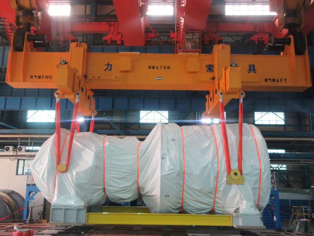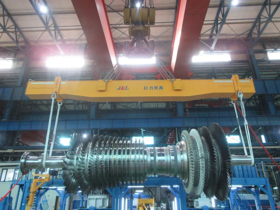 克日,在哈电通用燃气轮机无限公司总卸车间,首台国产HA级重型燃机顺遂下线,筹办托付粤港澳大湾区发电企业。巨力索具为其供给了额载110T转子吊具,470T燃机零件吊具,及高强吊带,高强吊绳等产物,为顺遂下线供给保证。
